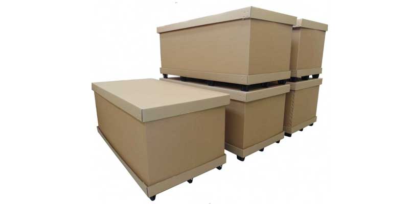 El contenedor de cartón corrugado de alto rendimiento, consta de una base, funda y tapa, que se coloca sobre una Tarima o Palet de madera, ofrecen resistencia, estabilidad, aislamiento y fácil de almacenar.